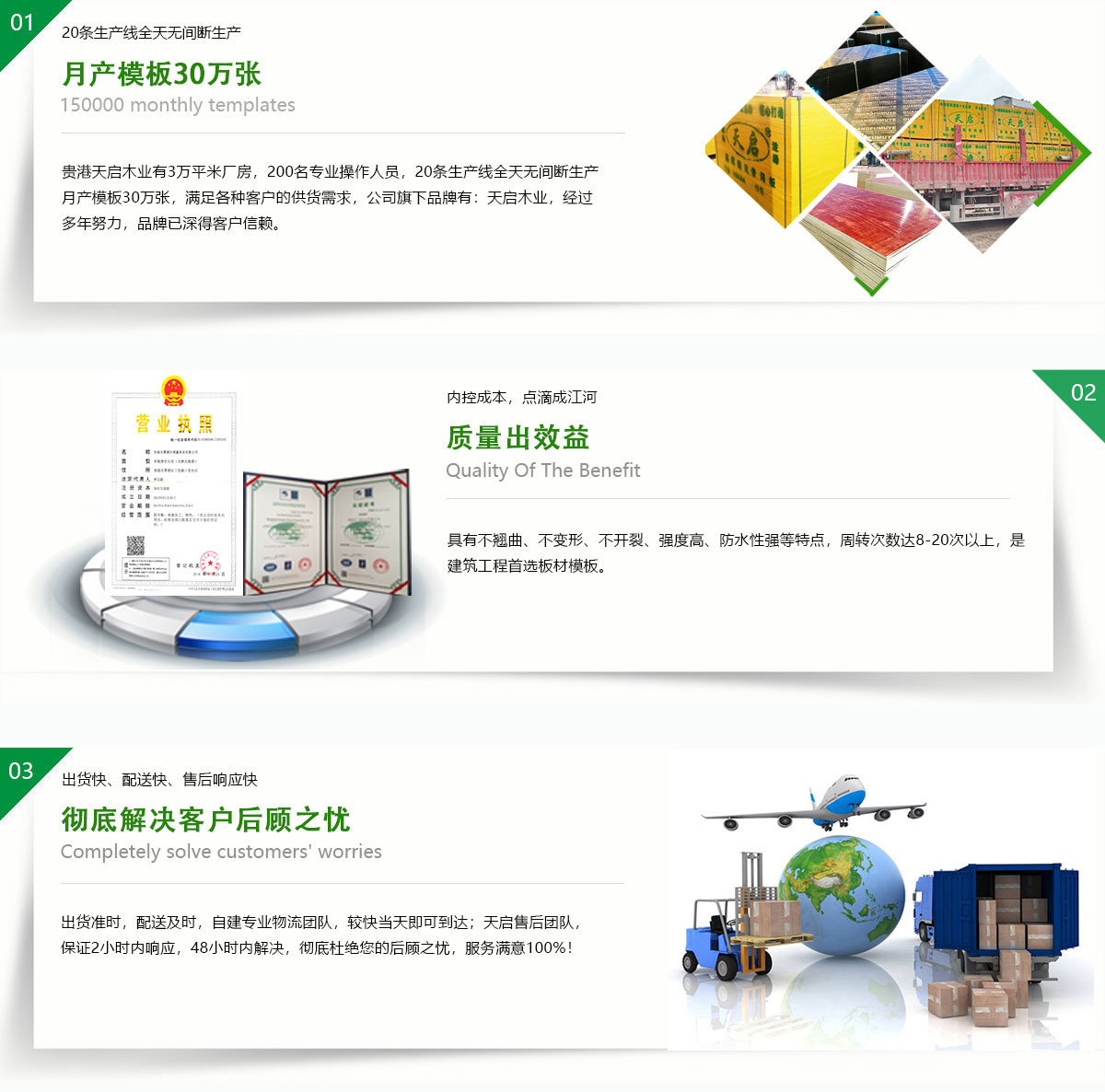 獨有對模板快速拆裝、重復使用、脫模效果好等優勢;天啟木業模板高端質造的外表之下藏著一顆強大的實用匠心!